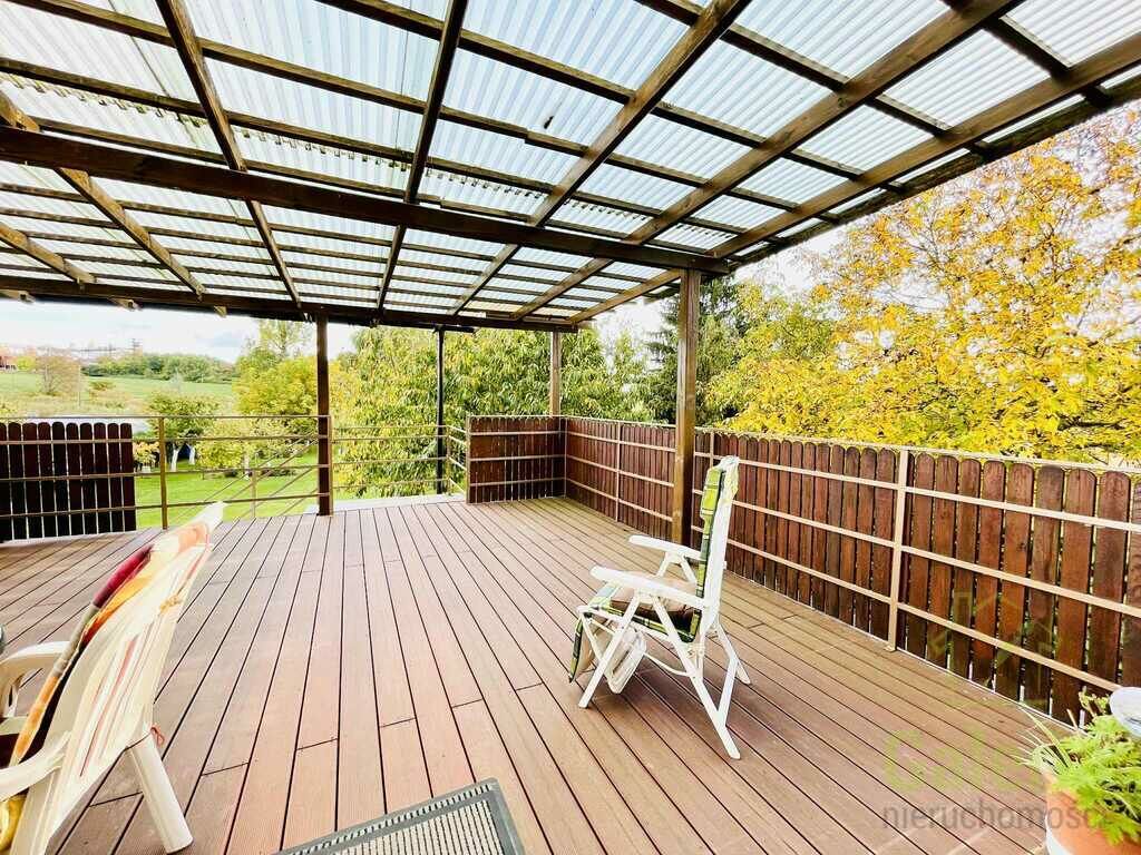 Parter salon z wyjściem na duży taras, z widokiem na pięknie