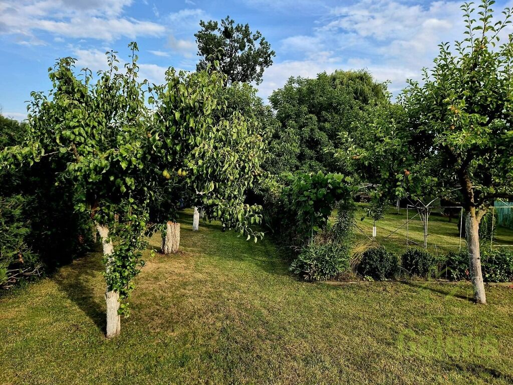 liczne nasadzenia: drzewa owocowe, żywopłot, krzewy